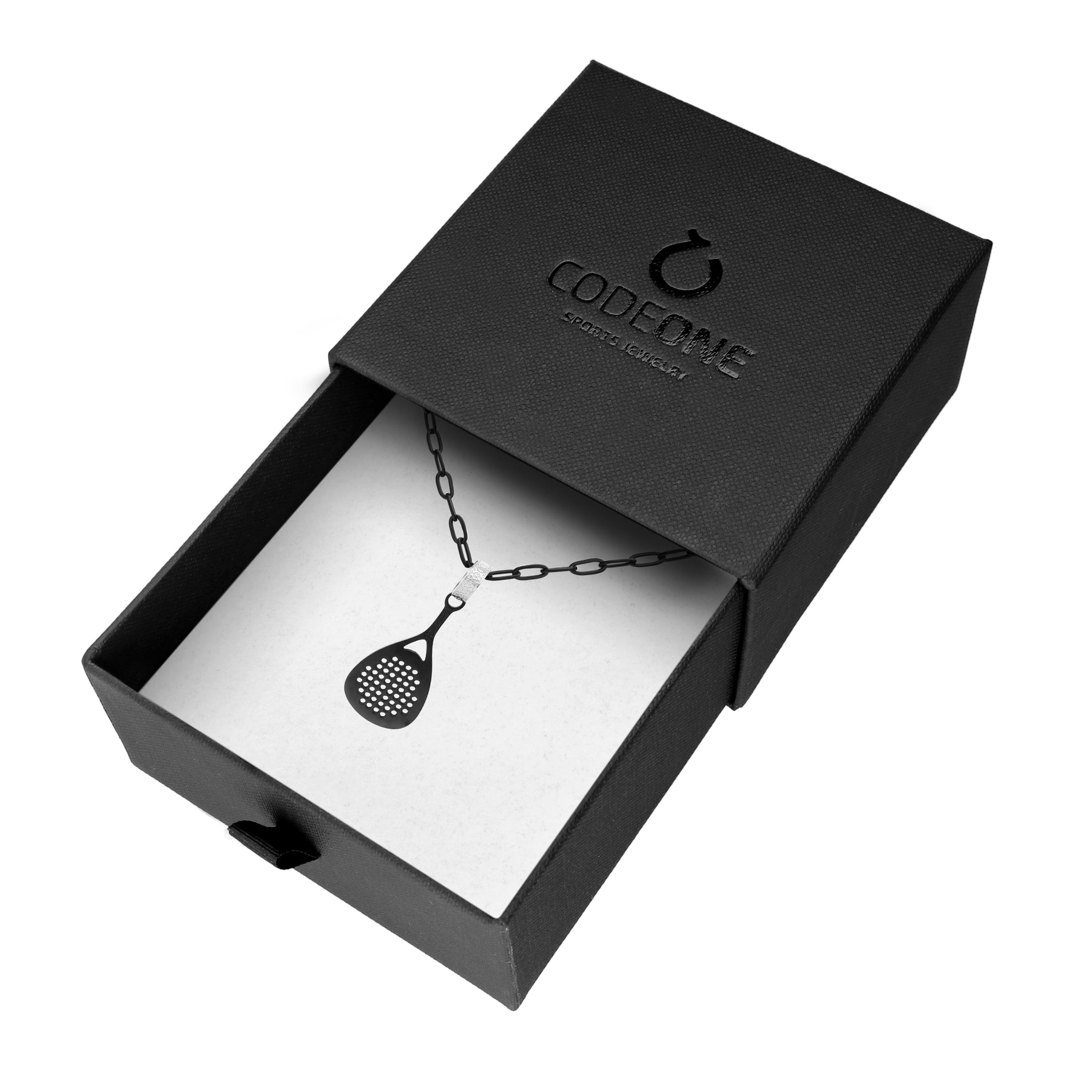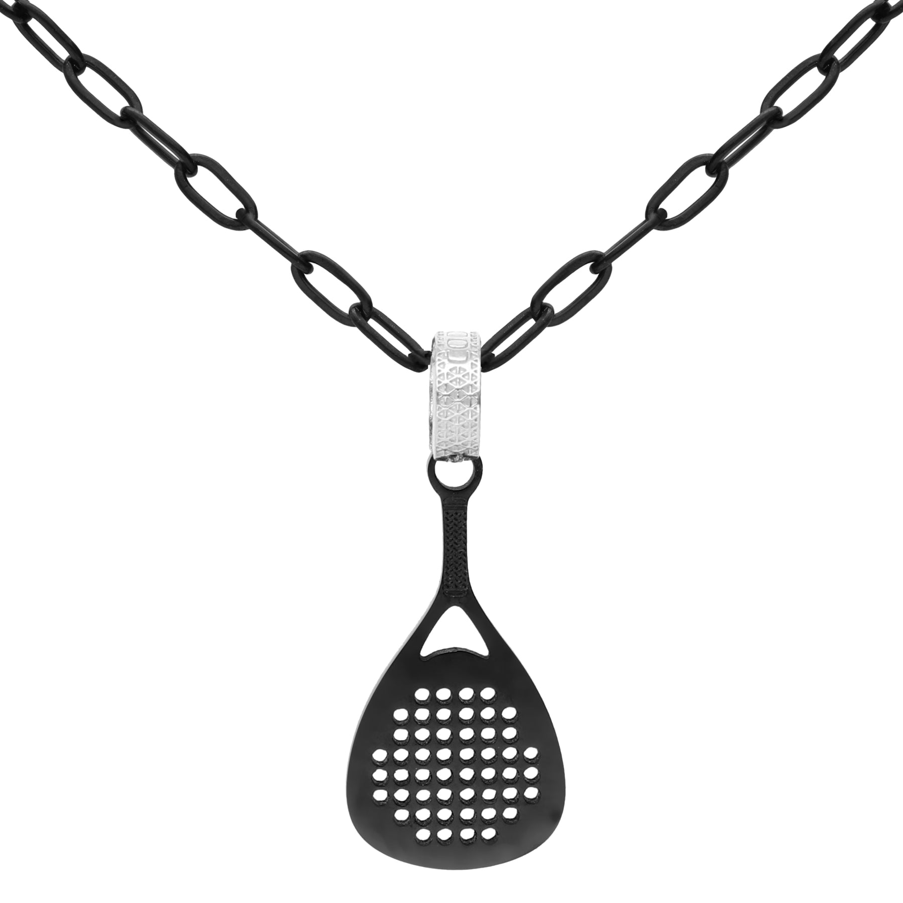 PADEL STEEL BLACK pendant made of stainless steel plated in black rhodium.
