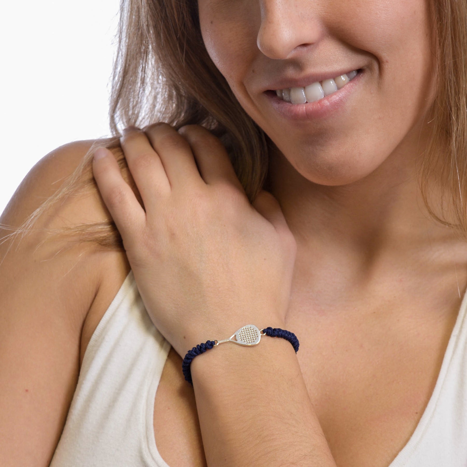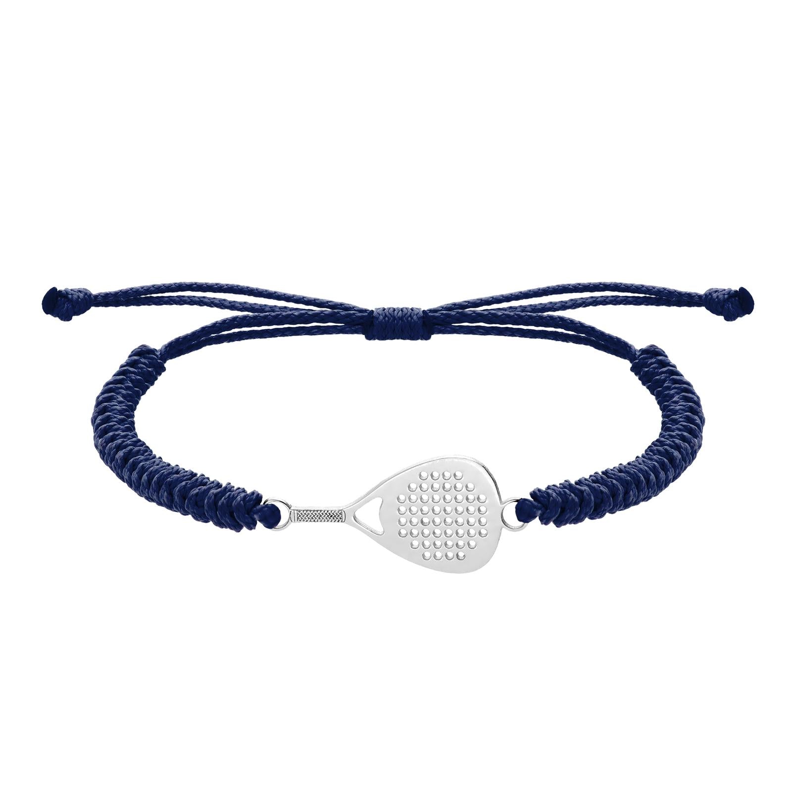 Padel racket bracelet made of stainless steel, with a hand-stitched structure in durable nylon thread. One size fits all, fully adjustable to any wrist, with sliding knots.