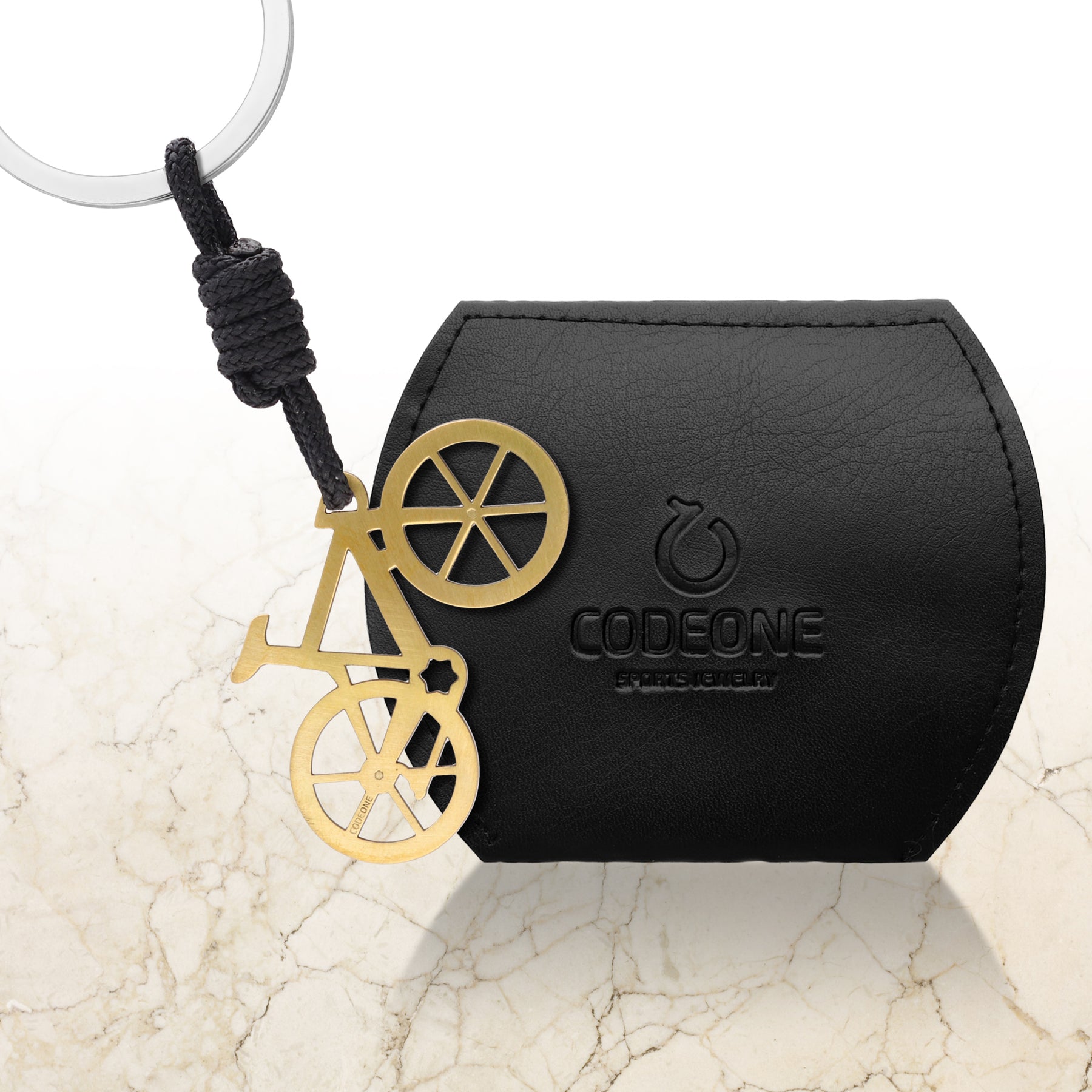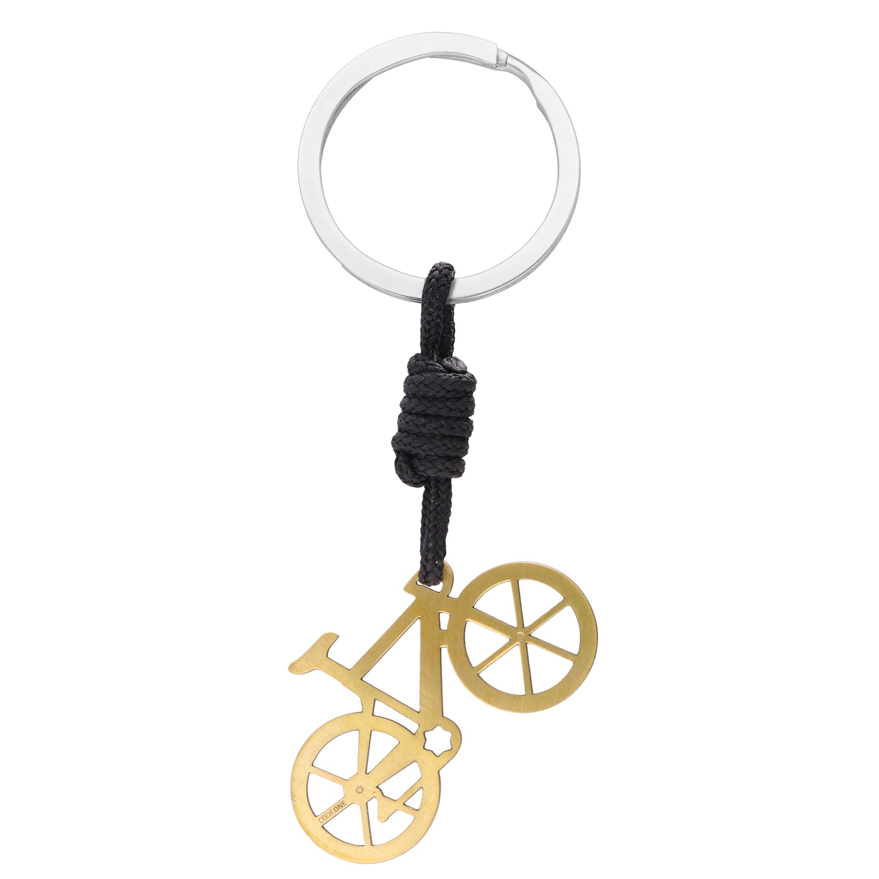 ROAD BIKE KEYCHAINmade of matte stainless steel, with a black ring with engraved brand logo, and a knot decoration with 2mm nylon.