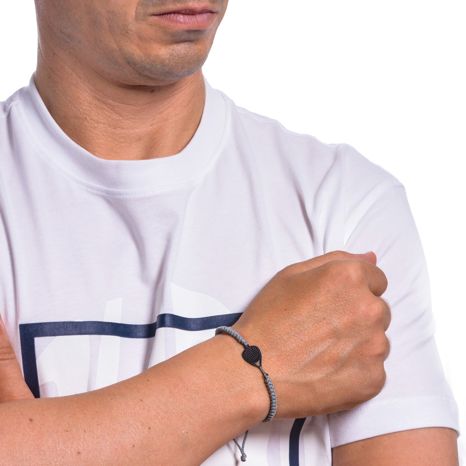 Padel racketbracelet made of stainless steel, with a hand-stitched structure in durable nylon thread. One size fits all, fully adjustable to any wrist, with sliding knots.